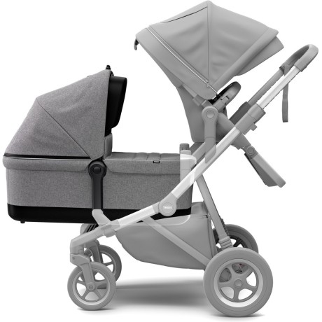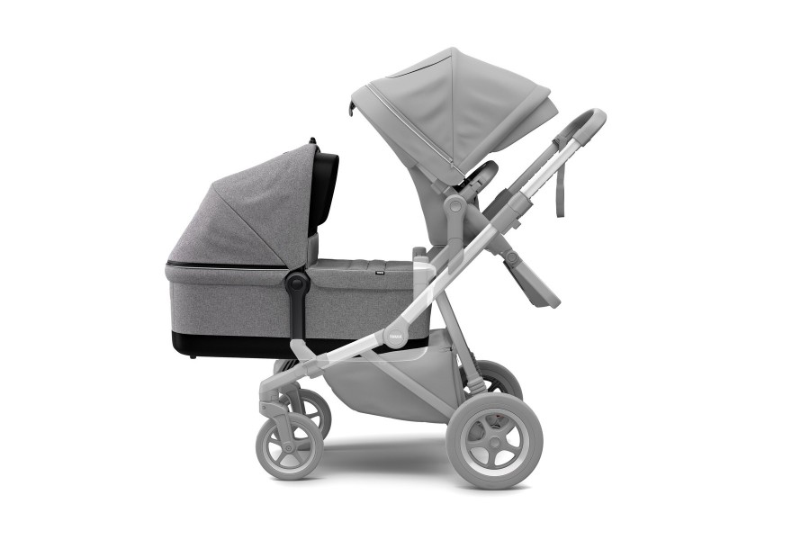 El moisés Thule Sleek transforma tu Thule Sleek en un cochecito y puedes convertirlo en un coche individual a doble cuando tu familia se expanda.