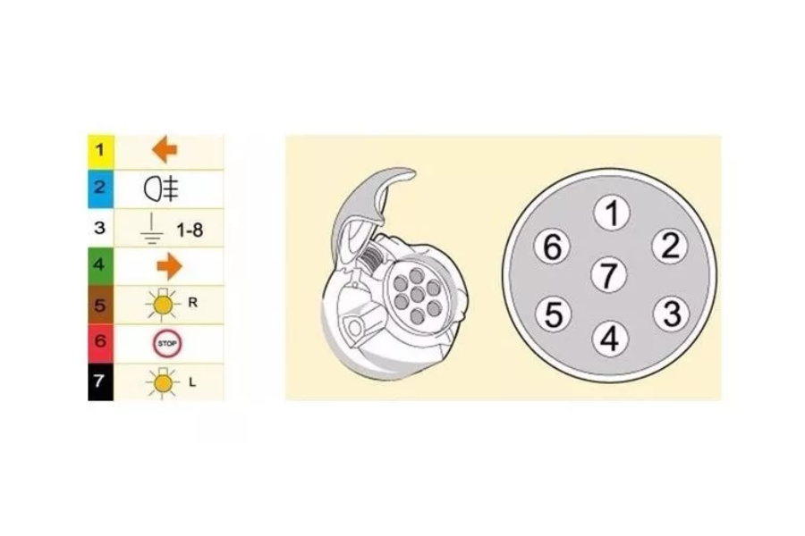 - Convierta el enchufe de 7 pines en un conector estándar de 13 pines de 12 V como en la mayoría de las caravanas y remolques.