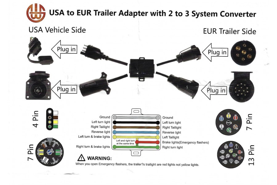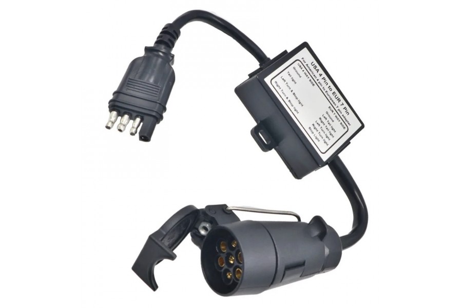 *Si su vehículo estadounidense tiene un conector plano de 4 polos y su remolque europeo tiene un enchufe redondo de 7 clavijas, donde su automóvil estadounidense necesita separar las señales de parada y trasera, deberá utilizar este adaptador de cableado para remolque.