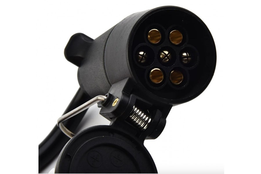 *Este convertidor eléctrico permite cambiar un enchufe plano de 4 vías estilo estadounidense a un conector de 7 pines estilo europeo.