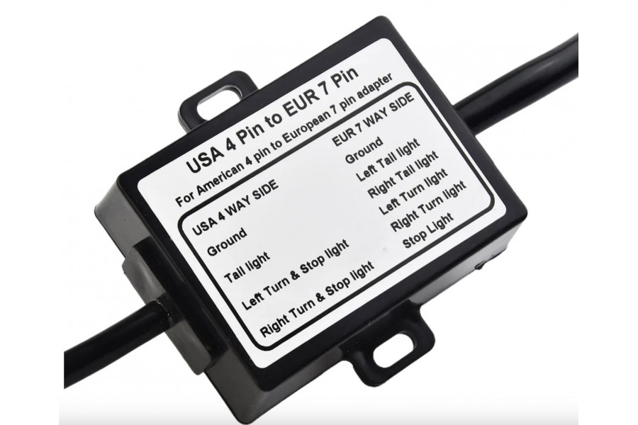 *Este fantástico Convertidor de Luces para Remolque fabricado por Carrofix está diseñado para separar la señal de "parada" del sistema de dos cables del vehículo estadounidense para conectar su remolque europeo (caravana, remolque de barco, portabicicletas y otros). Proporciona una solución eléctrica si tiene un vehículo estadounidense con 4 vías planas y desea conectar un remolque europeo con un pasador redondo de 7 vías.