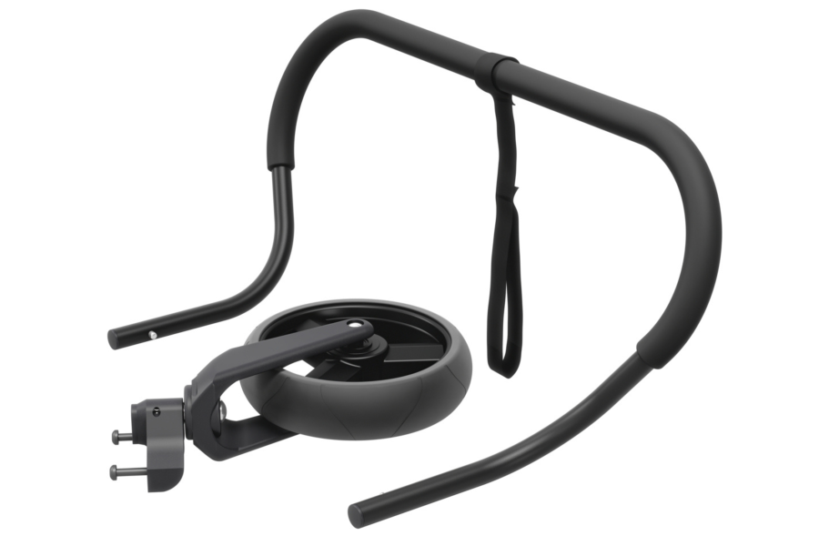El kit de carriola Thule Bexey te permite convertir rápidamente tu remolque en una carriola mediante la incorporación de una rueda y un manubrio. Cuando vas en bicicleta, puedes acoplar la rueda de la carriola al brazo de enganche, lo que facilita el cambio al modo carriola cuando llegues a tu destino.
