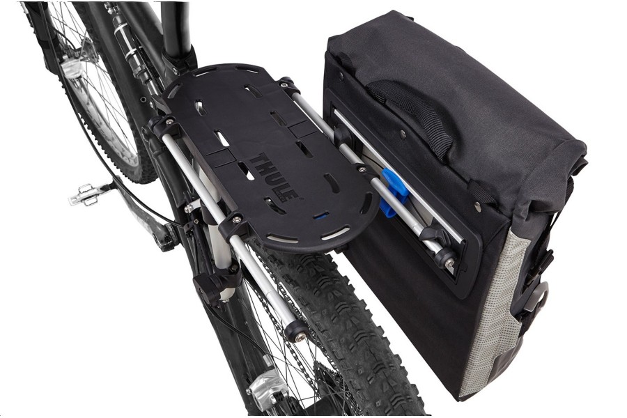 Se puede usar en la parte frontal o posterior, montado sobre el bastidor Tour de Thule Pack Õn Pedal.