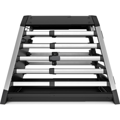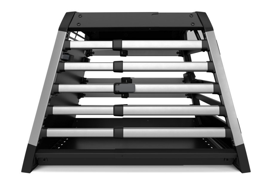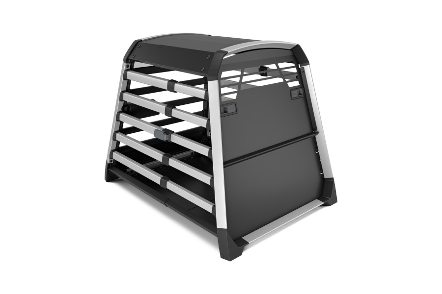 La jaula para perros viene en cinco a diez tamaños diferentes (dependiendo del mercado), todos con bordes redondeados para proporcionar un ajuste perfecto tanto para su coche como para su perro. Además, la jaula de viaje para perros se puede ajustar en profundidad para un ajuste perfecto en su maletero, y las bandas de tensión aseguran que se mantenga firmemente sujeta mientras conduce. Bien diseñada y bien construida, no habrá ruido ni traqueteo de esta jaula para perros de primera calidad.