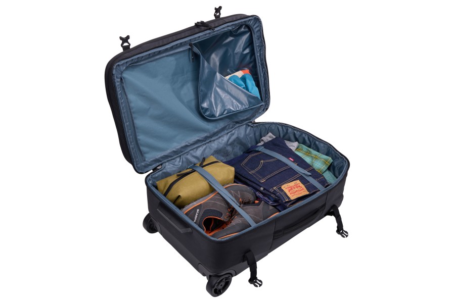 La maleta con ruedas Thule Aion es una maleta espaciosa para documentar que mantiene todas tus pertenencias organizadas y protegidas gracias a su lona encerada duradera y resistente al agua, su gran bolsillo fácil de limpiar para artículos mojados y sucios, y correas de compresión internas y externas.